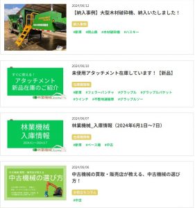林業機械の入庫情報(中古 / 未使用機)、