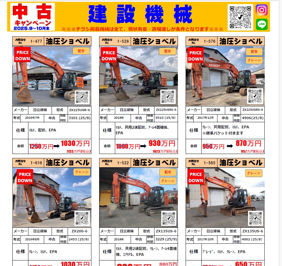 2025年10月末まで!早いもの勝ちの中古機多数!