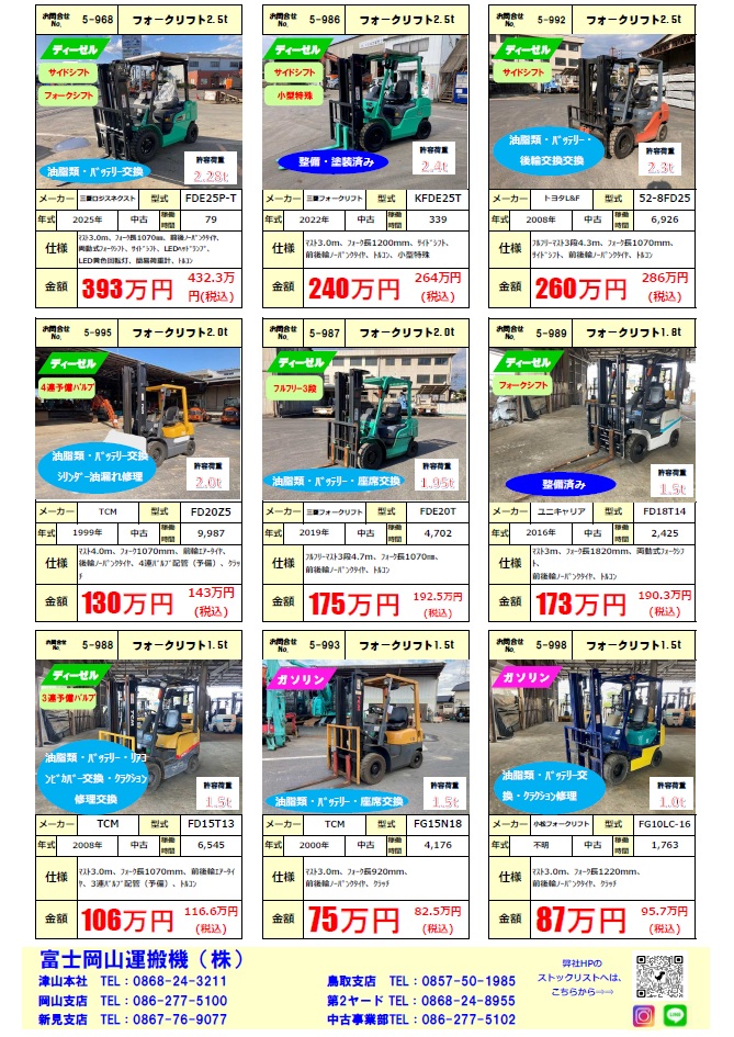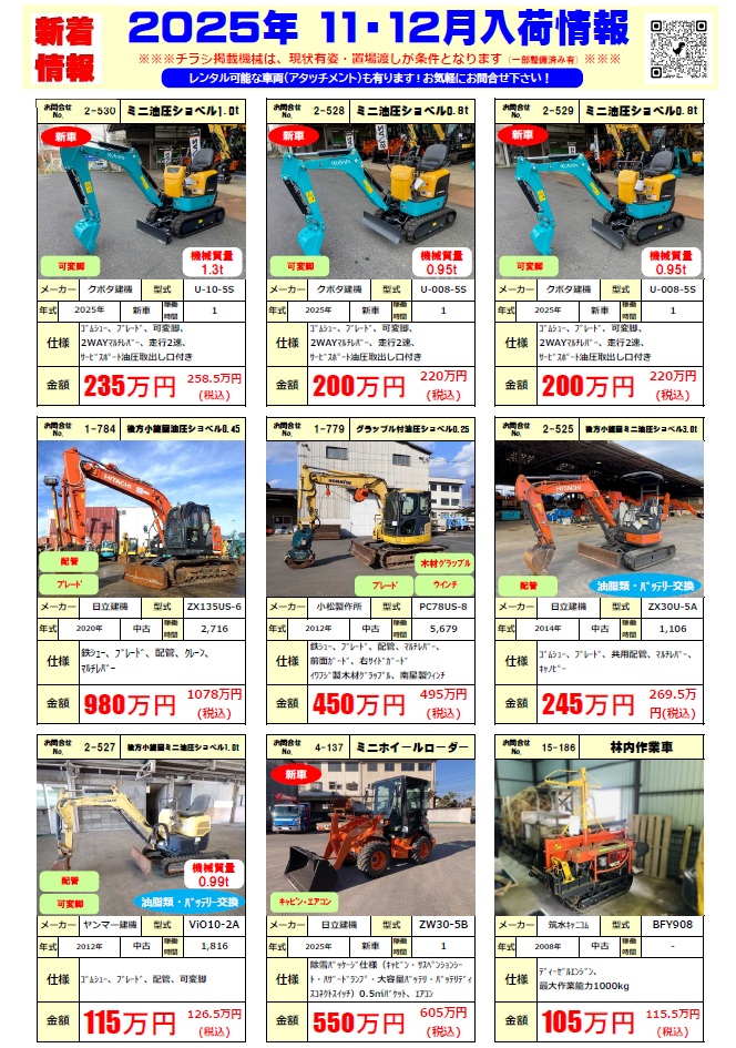 中古機入荷情報◆2025年11月&12月