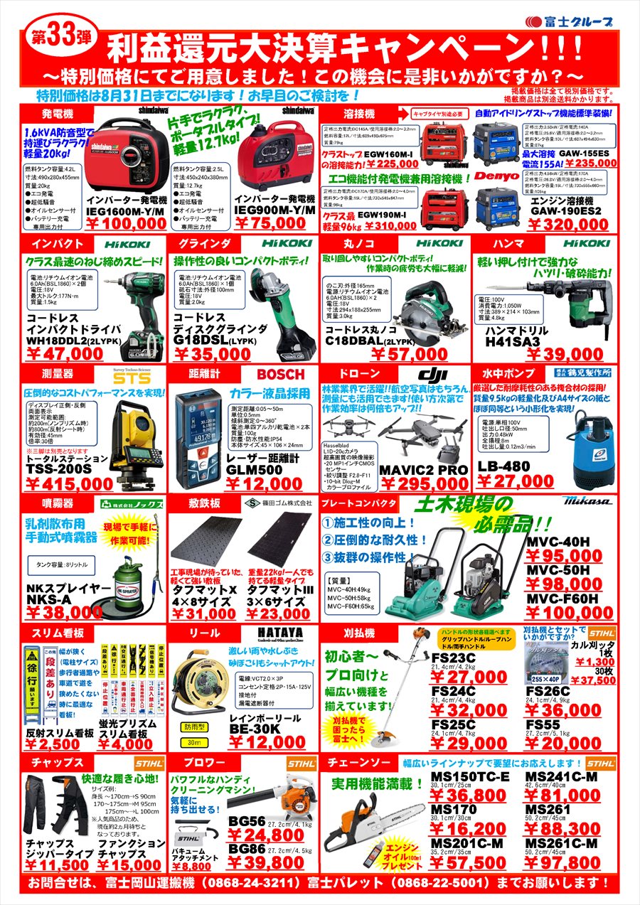 ◆発電機 ◆溶接機 ◆工具 ◆計測器 ◆ドローン