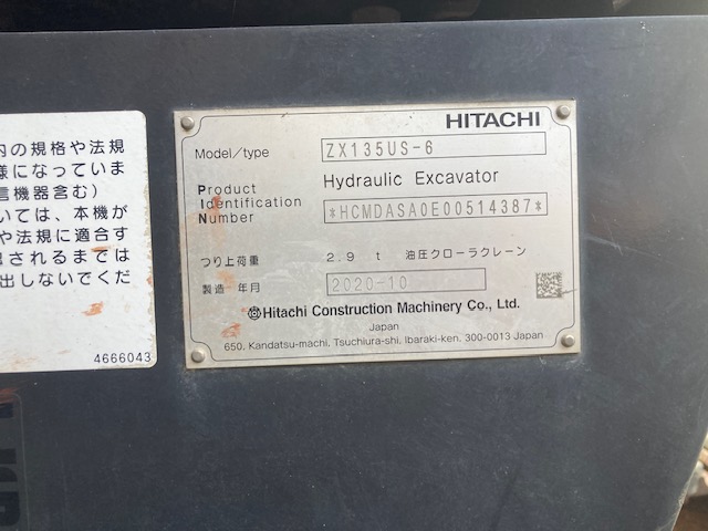 | 商品名 | 油圧ショベル | メーカー | 日立 | 機種 | ZX135US-6 |
