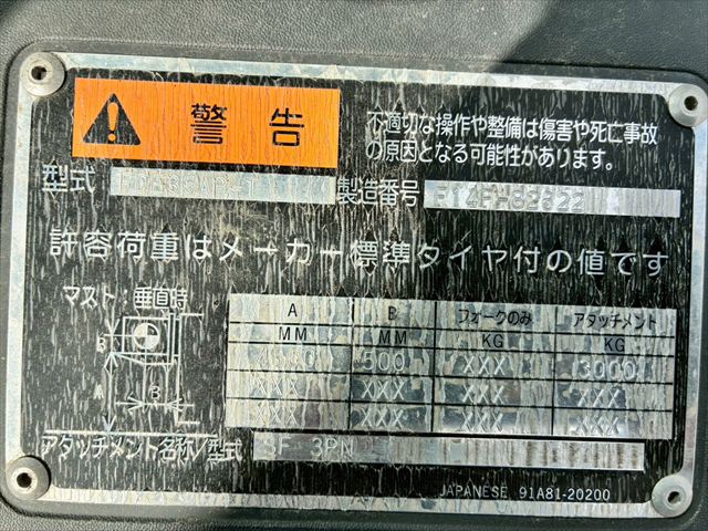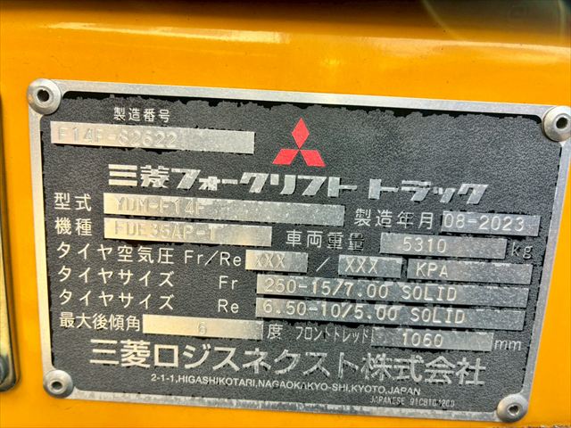 | 商品名 | フォークリフト | メーカー | 三菱ロジスネクスト(三菱) | 機種 | FDE35AP-T |