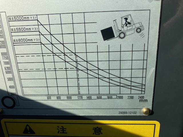 | 仕様・備考 | ディーゼル12t マスト3000mm フォーク2440mm 前輪エアーダブルタイヤ 後輪エアータイヤ サイドシフト付きフォークシフト 5連バルブ キャビン エアコン ノブずれ補正ステアリング グッドビューア 前部作業灯(ハロゲン) 簡易荷重計 車検装備 規制緩和表示 重量証明書 排ガス検査証 即納可能 |