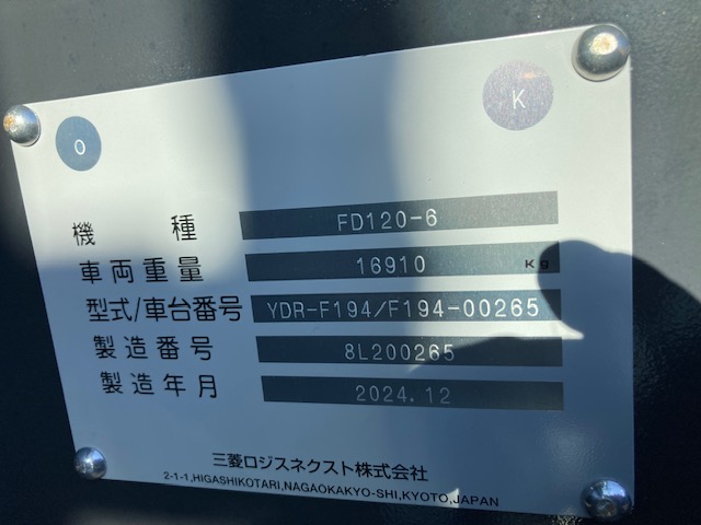 | 商品名 | フォークリフト | メーカー | 三菱ロジスネクスト(TCM) | 機種 | FD120-6 |