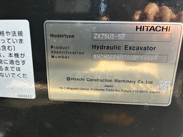 | 商品名 | 油圧ショベル | メーカー | 日立 | 機種 | ZX75US-5B(GP) |
