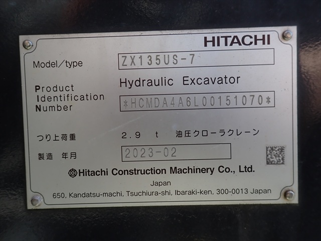| 商品名 | 油圧ショベル | メーカー | 日立 | 機種 | ZX135US-7 |