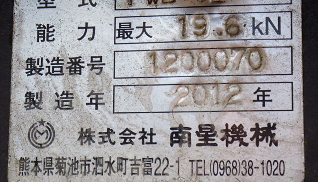 商品名 地引ウインチ メーカー 南星 機種 PWB-02 号機 1200070 YR 2012 HR --- KM --- ランク B 置き場 津山本社 第2ヤード 保証 --- -