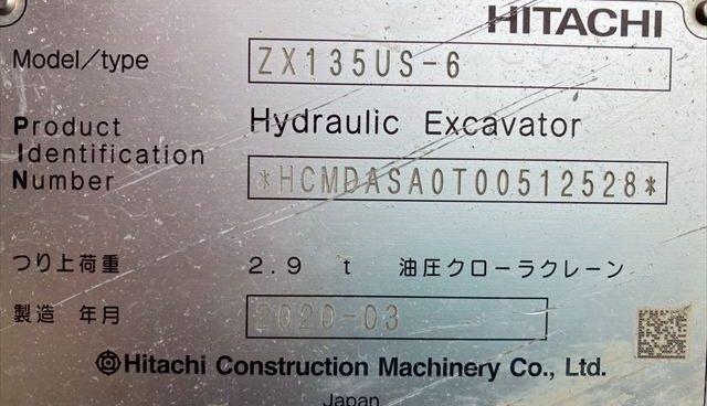 商品名 油圧ショベル メーカー 日立 機種 ZX135US-6 号機 512528 YR 2020 HR 2914 (2025年12月) KM --- ランク --- 置き場 津山本社 第2ヤード 保証 --- -