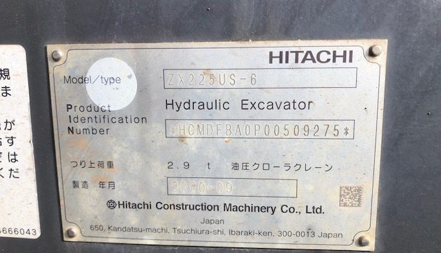 機種 ZX225US-6 号機 509275
