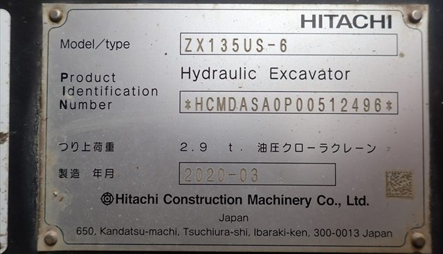商品名 油圧ショベル メーカー 日立 機種 ZX135US-6 号機 512496 YR 2020 HR 3083 (2026年4月) KM --- ランク B 置き場 津山本社 保証 --- -