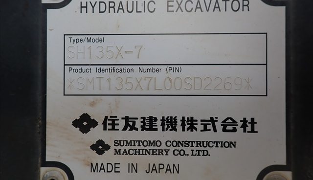 商品名 油圧ショベル メーカー 住友 機種 SH135X-7 号機 SD2269 YR 2020 HR 2635 (2026年4月) KM --- ランク B 置き場 津山本社 第2ヤード 保証 --- -