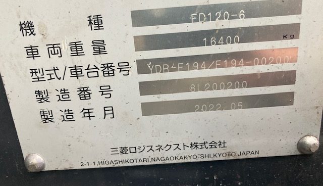 商品名 フォークリフト メーカー 三菱ロジスネクスト(TCM) 機種 FD120-6 号機 200 YR 2022 HR 3625 (2025年11月) KM --- ランク --- 置き場 津山本社 保証 --- -