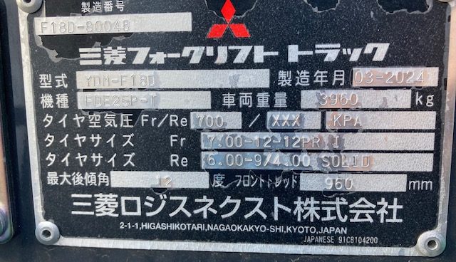 商品名 フォークリフト メーカー 三菱ロジスネクスト(三菱)