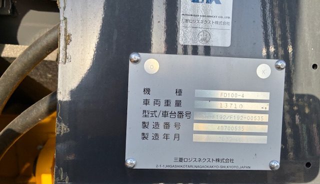 商品名 フォークリフト メーカー 三菱ロジスネクスト(TCM) 機種 FD100-4 号機 535 YR 2025 HR 0 (2026年3月) KM --- ランク A 置き場 岡山支店 保証 --- -