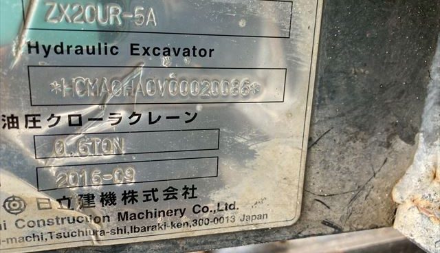 商品名 ミニショベル メーカー 日立 機種 ZX20UR-5A 号機 20086 YR 2016 HR 991 (2025年9月) KM --- ランク B 置き場 津山本社 第2ヤード 保証 --- -