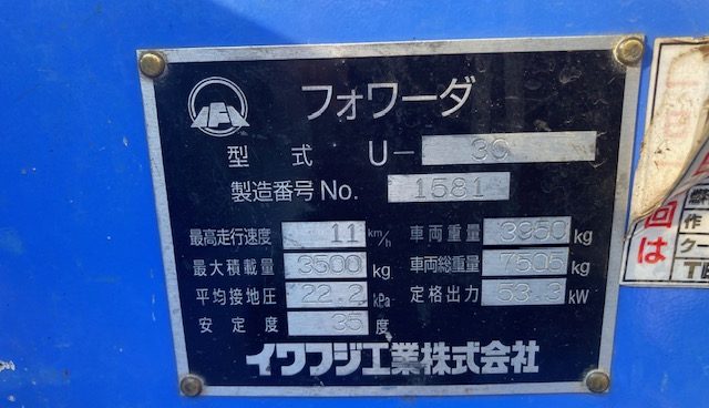 商品名 フォワーダー メーカー イワフジ 機種 U-3C 号機 1581 YR 2019 HR 2242 (2026年1月) KM --- ランク --- 置き場 津山本社 保証 --- -